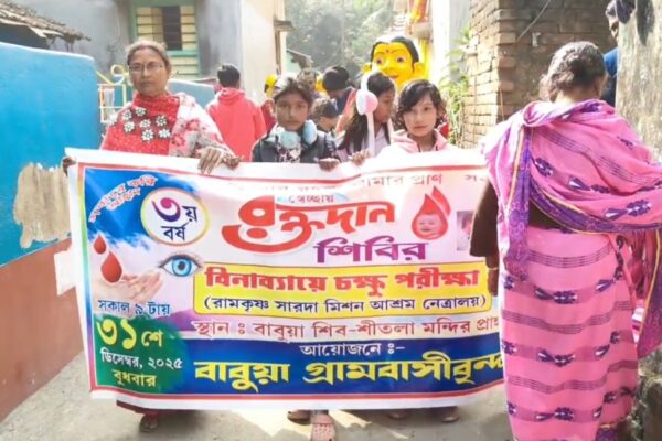 পূর্ব মেদিনীপুর, নিজস্ব সংবাদাতা:-ব্লাড ব্যাংকের রক্তের চাহিদা মেটানোর লক্ষ্যে এবং এলাকার সাধারণ মানুষের স্বার্থে বিনামূল্যে রক্তদান শিবির ও চক্ষু পরীক্ষা করার সুবিধা আয়োজন করল পূর্ব মেদিনীপুর জেলার কোলাঘাটের বাবুয়া গ্রামের বাসিন্দারা। বুধবার বাবুয়া শিব শীতলা মন্দির প্রাঙ্গণ রক্তদান ও বিনামূল্যে চক্ষু পরীক্ষা শিবিরের আয়োজন করা হয় গ্রামবাসীদের উদ্যোগে। এই দিন বর্ণাঢ্য শোভা যাত্রার মধ্য দিয়ে…