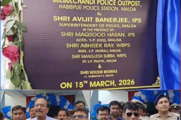 মালদা, নিজস্ব সংবাদদাতা:— মালদা জেলা পুলিশের উদ্যোগে হবিবপুর থানার আনুষ্ঠানিক ভাবে বুলবুলচন্ডী পুলিশ ফাঁড়ির উদ্বোধন হয়ে গেল রবিবার। আনুষ্ঠানিক উদ্বোধন করলেন জেলা পুলিশ সুপার অভিজিৎ ব্যানার্জি। এদিন তিনি বুলবুলচন্ডী নতুন বাস টার্মিনাস এলাকায় নব নির্মিত পুলিশ ফাঁড়ির উদ্বোধন করেন। উদ্বোধন পর্বে জেলা পুলিশ সুপার ছাড়াও উপস্থিত ছিলেন হবিবপুর থানার আইসি কৌশিক বিশ্বাস, হবিবপুরের বিডিও মনোজ…