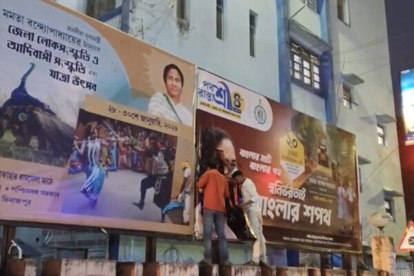 বালুরঘাট, দক্ষিণ দিনাজপুর, নিজস্ব সংবাদদাতা:পোস্টার ছেঁড়াকে কেন্দ্র করে বালুরঘাটে উত্তেজনা ছড়াল রাজনৈতিক মহলে। বুধবার রাতে দক্ষিণ দিনাজপুর জেলার বালুরঘাট শহরের ৪ নম্বর ওয়ার্ডে Bharatiya Janata Party ও All India Trinamool Congress-এর কর্মী-সমর্থকদের মধ্যে বচসা ও অশান্তির ঘটনা ঘটেছে বলে অভিযোগ।বিজেপির অভিযোগ, রাতের অন্ধকারে কিছু দুষ্কৃতী ‘বয়কট বিজেপি’ লেখা পোস্টার সাঁটছিল। বিষয়টি জানতে পেরে বিজেপি কর্মীরা…