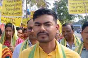 দীর্ঘ পাঁচ মাস ধরে বেতন না পাওয়ার অভিযোগে বিক্ষোভে সামিল হলেন রাজবংশী ভাষার শিক্ষক-শিক্ষিকারা।