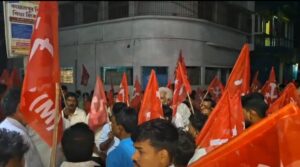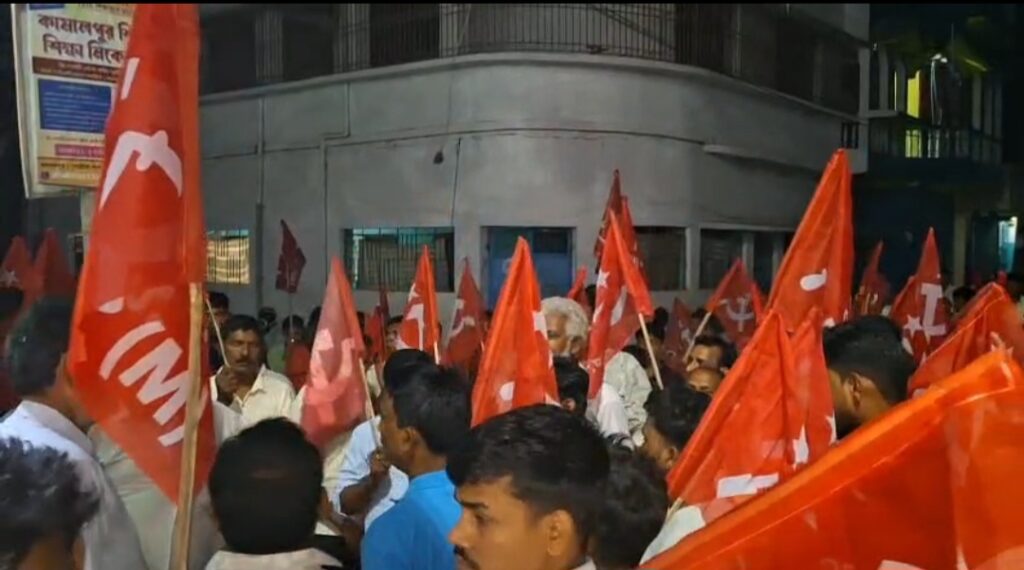 দলীয় অফিসের গেটে বিজেপির ঝান্ডা, থানায় বিক্ষোভ বামেদের।
