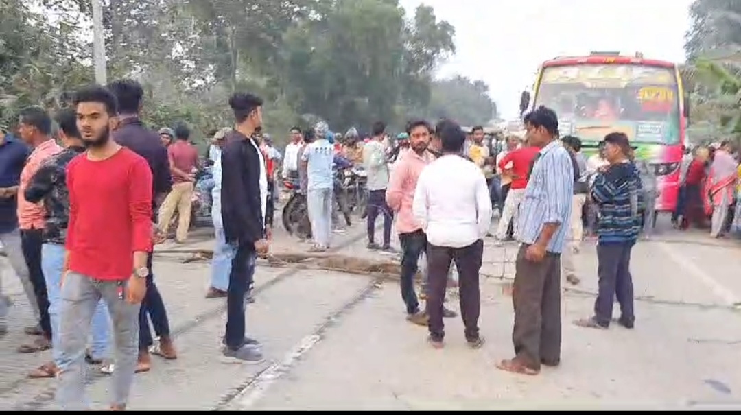 দাবি পুলিশ রাজ্য সড়কে কেন গাড়ি ধরবে, কেন গাড়ি চেকিং করবে – পথ অবরোধ এলাকার মানুষজনদের ।