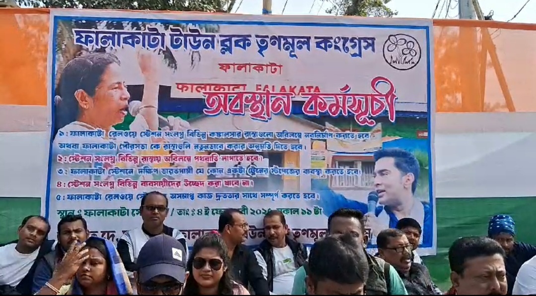 ফালাকাটা স্টেশন চত্তরে দিনভর অবস্থান বিক্ষোভ কর্মসূচি পালন করা হলো।