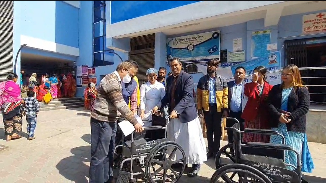 শুক্রবার একটি অনুষ্ঠানের মধ্যদিয়ে গঙ্গারামপুর সুপার স্পেস্যালিটি হাসপাতালে দুটি হুইলচেয়ার প্রদান করে স্কুল কর্তৃপক্ষ।