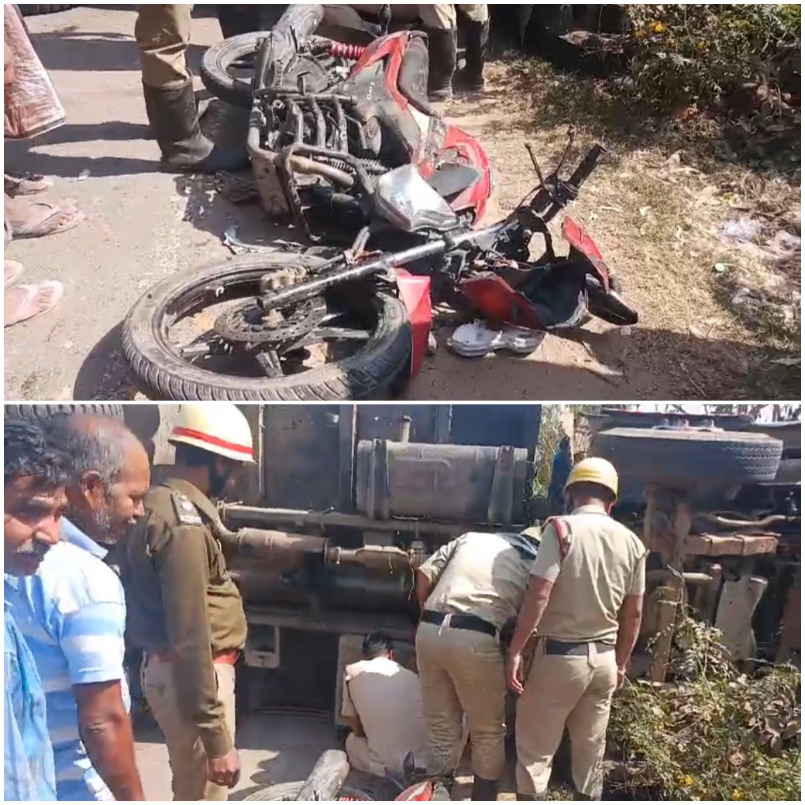 এক বাইক আরোহীকে বাঁচাতে গিয়ে রাজ্য সড়কের পাশে উল্টে গেল যাত্রী বোঝাই ট্রাক।