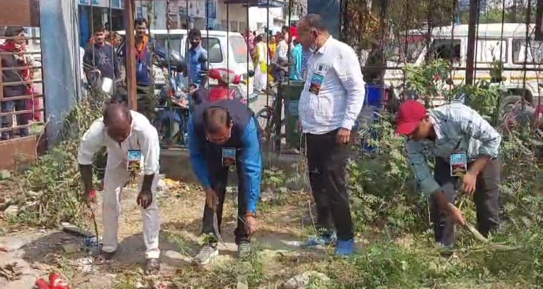 হাসপাতাল চত্বরে গজিয়ে ওঠা জঙ্গল, আবর্জনা পরিষ্কার করতে সাফাই কর্মীদের সংগঠনের পক্ষ থেকে হাসপাতাল চত্বর সাফাই অভিযান।