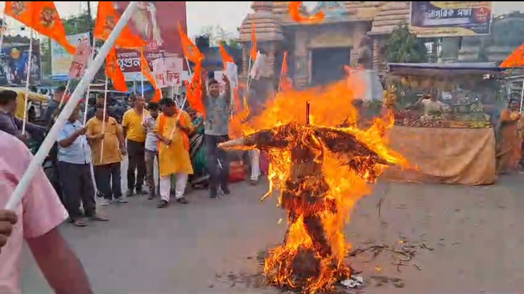 মুখ্যমন্ত্রী মমতা বন্দ্যোপাধ্যায় কুমন্তব্য করার অভিযোগে কাঁথি শহরে ভবতারিণী মন্দিরের সামনে বিক্ষোভ প্রদর্শন ও মুখ্যমন্ত্রীর কুসপুতুল দাহ করলো হিন্দু সনাতনীরা।