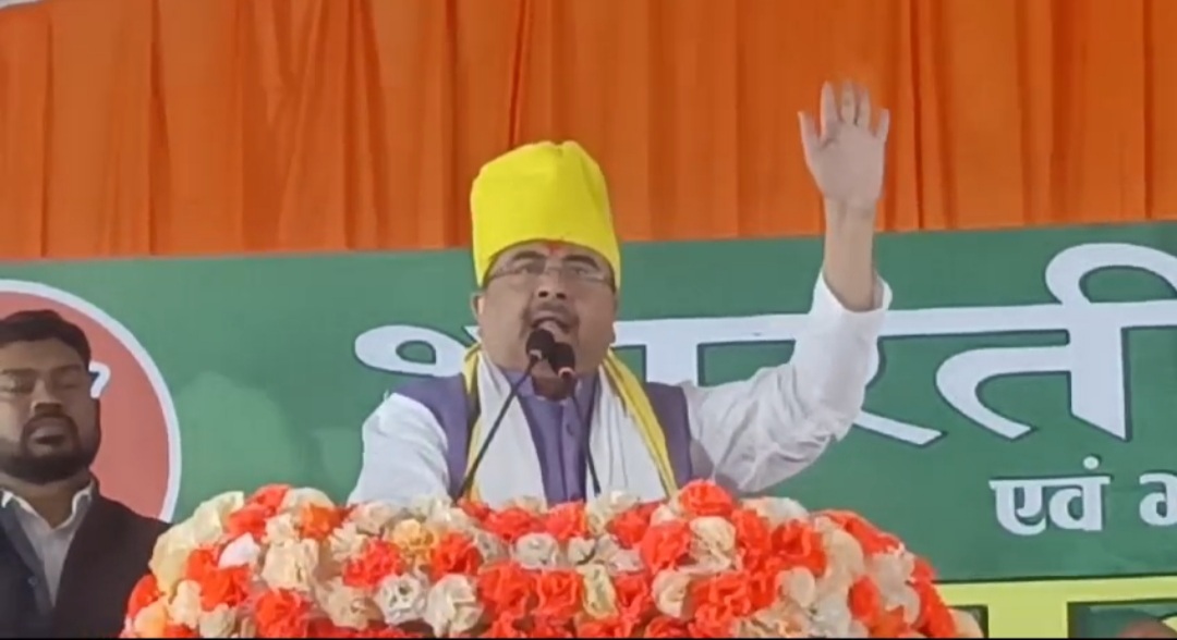 আলিপুরদুয়ারের কালচিনি ব্লকের সুভাষিনি চা বাগান ময়দানে জনসভায় শুভেন্দু অধিকারী।