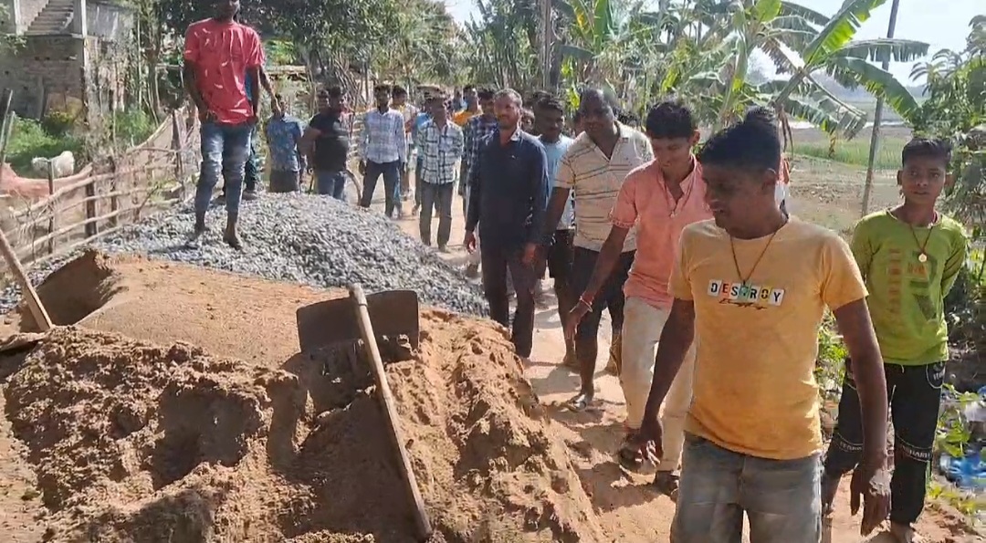 মালদার মানিকচকের বাকিপুর শ্যামসুন্দরী এলাকায় রাস্তার কাজ বন্ধ করে বিক্ষোভ দেখালেন গ্রামবাসীরা