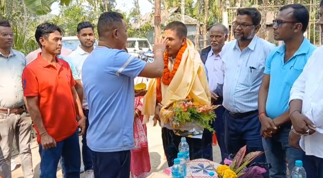 নিজস্ব সংবাদদাতা, আলিপুরদুয়ার:- ফালাকাটা ব্লকের ধনীরামপুর ২ নম্বর গ্রাম পঞ্চায়েতের সরুগাও চা বাগানের নেপালী বস্তির বাসিন্দা রাজ প্রধান ন্যাশনাল ক্যারাটে প্রতিযোগিতায় অংশ গ্রহণ করতে যাচ্ছে। সোমবার তাকে সংবর্ধনা প্রদান করা হয়। এদিন রাজ প্রধানকে ফুলের তোড়া ও মিষ্টি মুখ করিয়ে সংবর্ধনা জানানো হয়। জানা গিয়েছে, রাজ প্রধান কিও অল ইন্ডিয়া ক্যারাটে ডিও চ্যাম্পিয়নশিপে অংশগ্রহণ করতে যাচ্ছে। আগামী ২৬ মার্চ থেকে ২৯ শে মার্চ তেলেঙ্গানার হায়দ্রাবাদে ওই ক্যারাটে প্রতিযোগিতা অনুষ্ঠিত হবে। এদিনের সংবর্ধনা প্রদান অনুষ্ঠানে উপস্থিত ছিলেন, সরুগাও চা বাগানের ম্যানেজার আনন্দ শুক্লা ছিলেন বিশিষ্ট সমাজসেবী পবিত্র কুমার রায়, আনন্দ খাড়িয়া, অজয় শা, নীলকমল উরাও ,সরুগাও চা বাগান প্রাথমিক বিদ্যালয়ের প্রধান শিক্ষক শশীমোহন সরকার,সমাজসেবী সাবির উরাও,অনুপ প্রধান প্রমুখ।