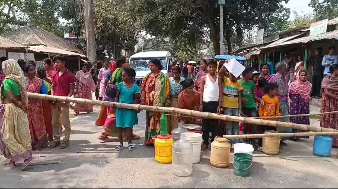 হাঁড়ি কড়াই বালতি নিয়ে জলের দাবিতে রাস্তা অবরোধ।