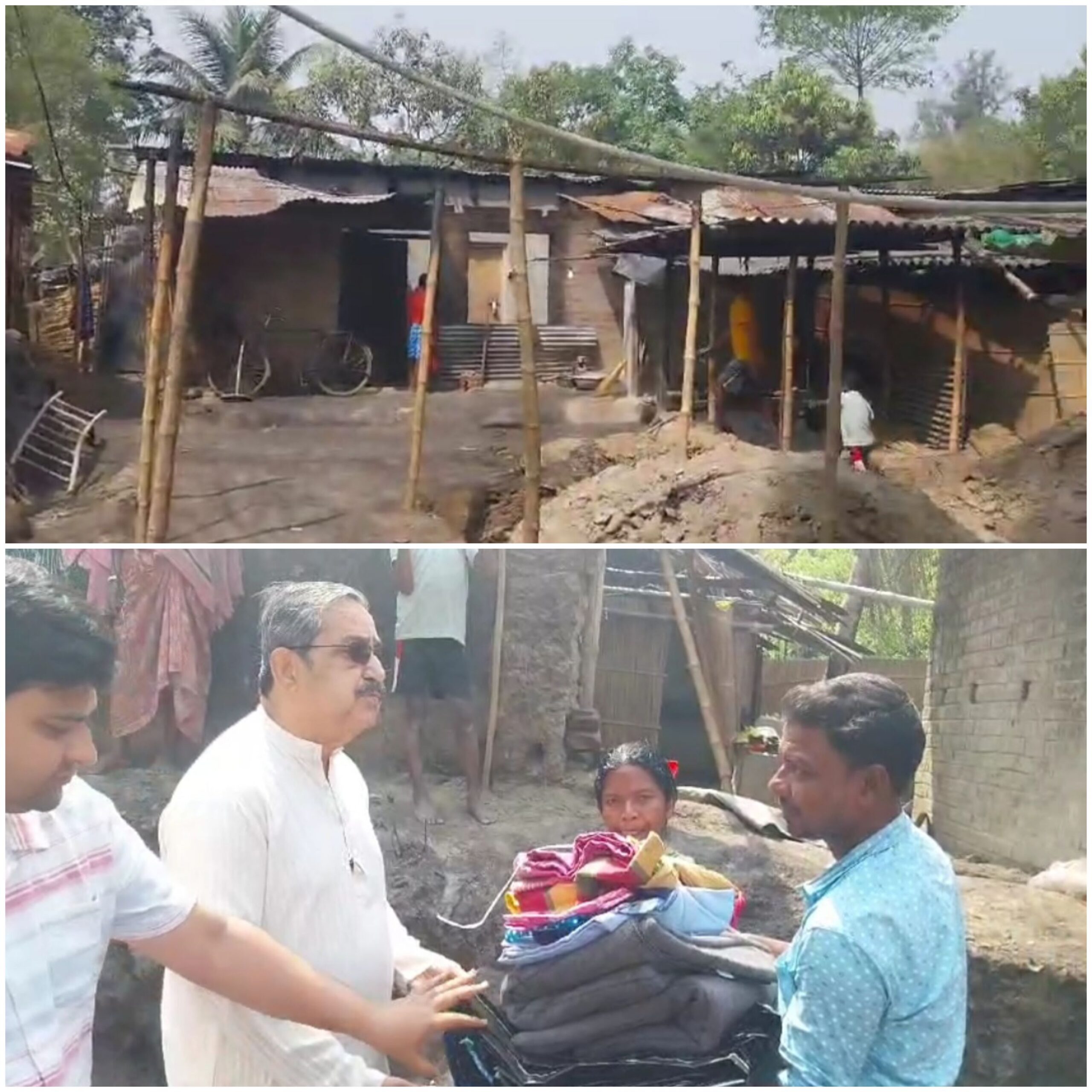 চিঙ্গিসপুর অঞ্চলের মাটিকাটা গ্রামে ভয়াবহ আগুনে দুটি আদিবাসী পরিবারের বাড়ি ভস্মীভূত হয়ে যায়, পরিবারগুলোর পাশে দাঁড়াল বিধায়ক।
