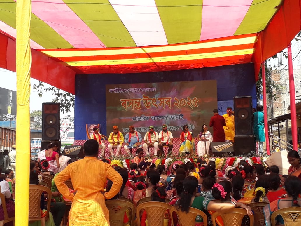 পশ্চিম মেদিনীপুর জেলার চন্দ্রকোনারোড দোল উৎসব উপলক্ষে শুক্রবার শহরের চৌরাস্তার মোড়ে বসন্ত উৎসব পালন করা হলো।