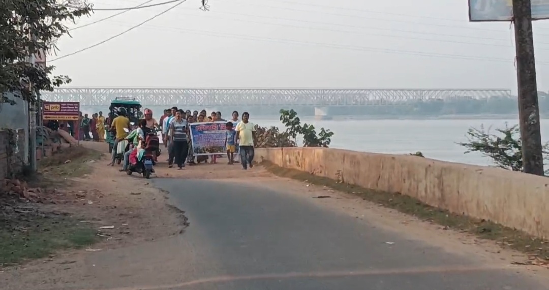 পূর্ব মেদিনীপুর জেলার কোলাঘাটের দেনান এলাকার রূপনারায়ন নদীর পাড়ে অবৈধ নির্মাণ বন্ধ করার দাবি তুলে প্রতিবাদ মিছিল করল গ্ৰামবাসীবৃন্দ।