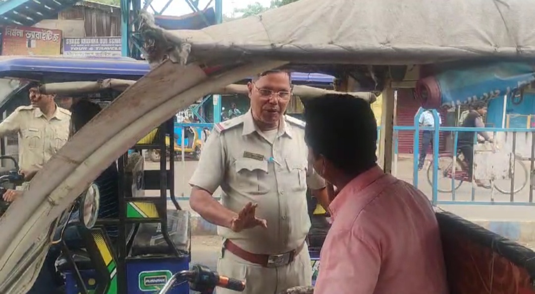 দিনাজপুর জেলার বালুরঘাটে মিউনিসিপালিটির শহর এলাকায় টোটোর ডান দিক ডান দিক ঘেড়া নিয়ে তৎপর পুলিশ প্রশাসন।