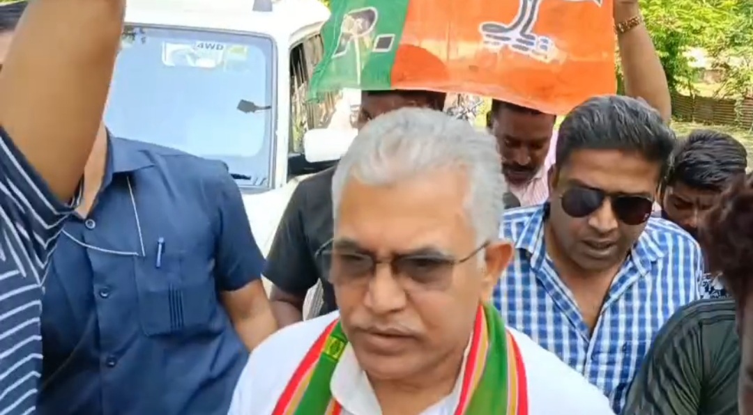 বিতর্কিত মন্তব্যের পর দিলীপ ঘোষের বাংলোর সামনে বিক্ষোভ শুরু করে তৃণমূল কর্মী সমর্থকরা