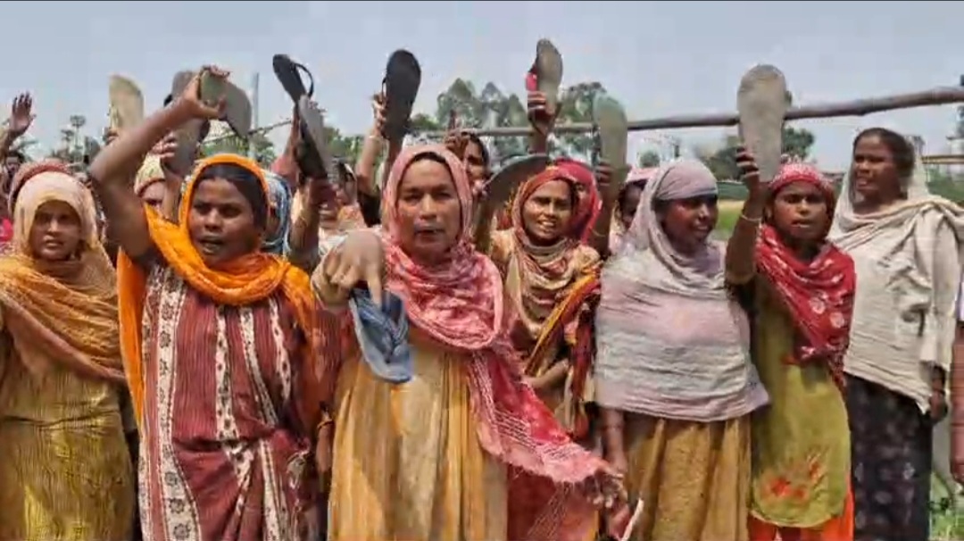 জমি দখলে অভিযুক্ত তৃণমূল নেত্রীর গ্রেপ্তারির দাবিতে এবার চটি হাতে বিক্ষোভ এলাকার মহিলাদের।