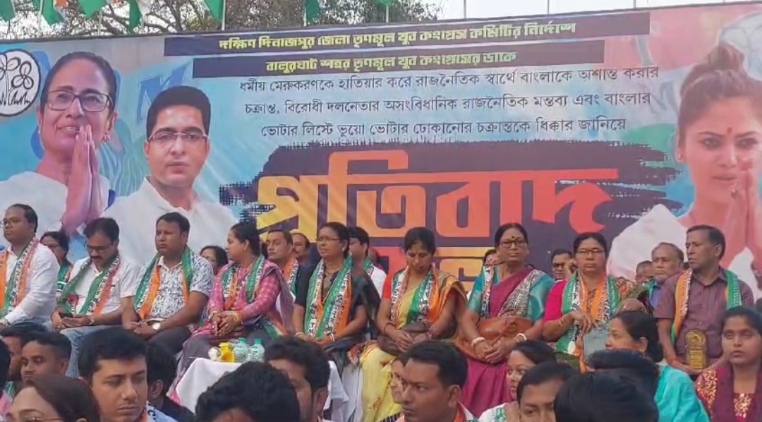 বালুরঘাট, নিজস্ব সংবাদদাতা :- বিজেপির ধর্মীয় মেরুকরণের রাজনীতি ও নেতাদের বিতর্কিত মন্তব্যের প্রতিবাদে পথে নামল যুব তৃণমূল কংগ্রেস। বালুরঘাটের হিলি মোড়ে অনুষ্ঠিত এক প্রতিবাদ সভা থেকে বিজেপির রাজ্য সভাপতি সুকান্ত মজুমদারের উদ্দেশ্যে খোলা চিঠি লিখে জবাব দাবি করলেন যুব তৃণমূলের নেতৃত্ব। মূলত বিজেপি বিধায়ক ও বিরোধী দলনেতা শুভেন্দু অধিকারীর সাম্প্রতিক মন্তব্যের বিরুদ্ধে এই প্রতিবাদ সভার আয়োজন করা হয়।