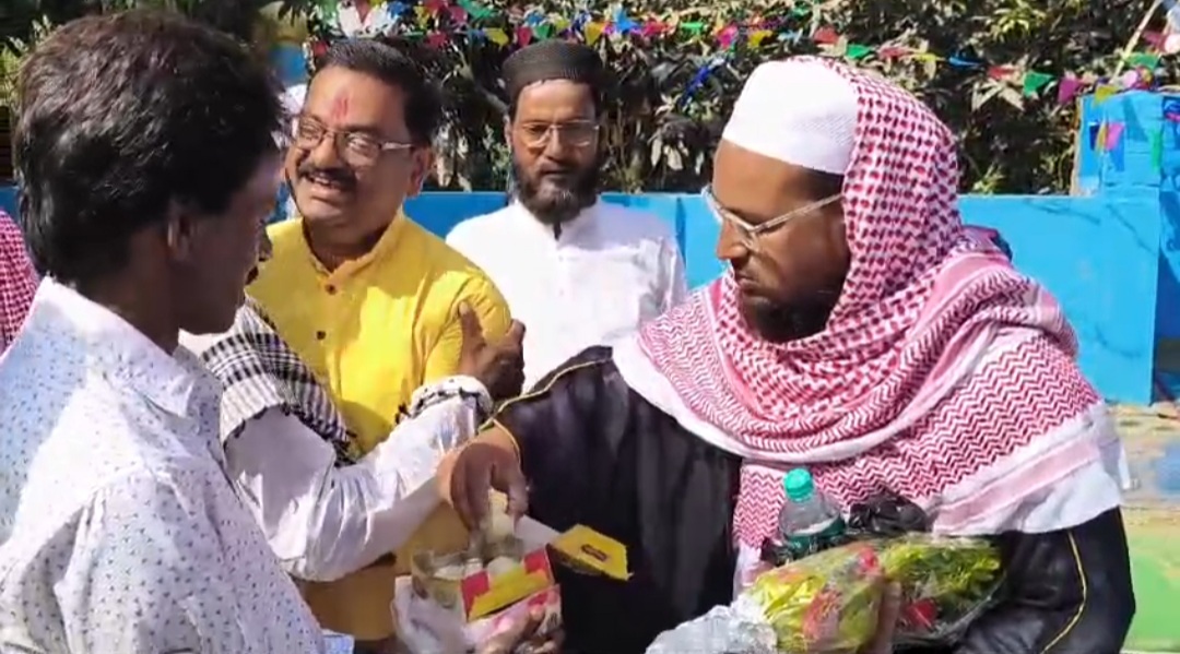 নিজস্ব সংবাদদাতা, মালদাঃ- —সম্প্রীতির বার্তা দিতে হরিশ্চন্দ্রপুর ১ ব্লকের তুলসীহাটা জামে মসজিদের ঈদগাহের ইমাম কে মিষ্টি মুখ করার পাশাপাশি ফুলের তোড়া দিয়ে ঈদের শুভেচ্ছা বার্তা জানালেন হরিশ্চন্দ্রপুর ১ (বি) ব্লক কিষান খেতমজদুর তৃণমূল কংগ্রেসের সভাপতি মনোজ রাম,বিনোদ গুপ্তা,দিপক দাস ও লক্ষন মহালদাররা। কবি কাজী নজরুল ইসলামের হিন্দু মুসলমান কবিতাটির
