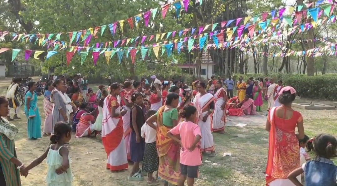 নিজস্ব সংবাদদাতা, আলিপুরদুয়ার::– আদিবাসী সমাজের গণবিবাহ উপলক্ষে উচ্ছ্বাসে ভাসল ফালাকাটার দলগাঁও চা বাগানের দলমনি ডিভিশনে শ্রমিক মহল্লা। মঙ্গলবার সেখানকার শ্রমিক ও শ্রমিক পরিবারের সদস্যরা রীতিমত উৎসবে মেতে ওঠেন। আর এই অনুষ্ঠানে মন্ত্রোচ্চারণের মাধ‍্যমে শুভদৃষ্টি সম্পন্নর পাশাপাশি চার হাত এক হল চার জোড়া নব দম্পতির।ফালাকাটা ব্লকের দলগাঁও চা বাগানের দলমনি ডিভিশনের আদিবাসী সমাজের উদ্যোগে আদিবাসী সমাজের সরহুল উৎসব আয়োজন করা হয়। এই উপলক্ষেই গণবিবাহের আসর বসে। এদিন চার জোড়া নব দম্পত্তি এই গণবিবাহের আসরে বিবাহ বন্ধনে আবদ্ধ হন।