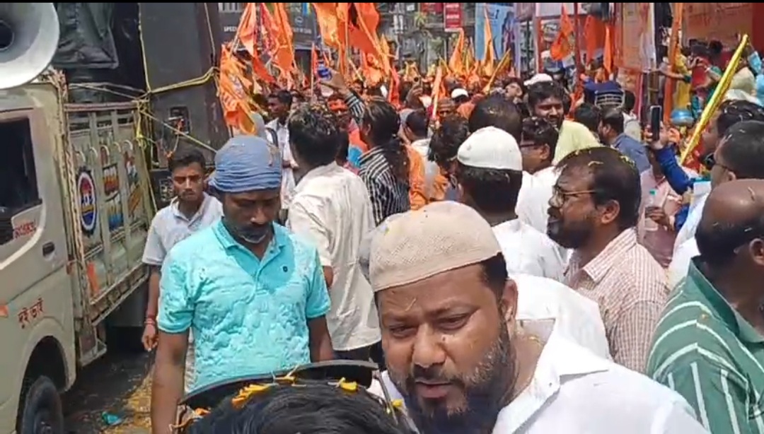 রাম নবমীর শোভাযাত্রায় অংশগ্রহণকারী রাম ভক্তদের উপর পুষ্প বৃষ্টি করে, তাদের মধ্যে জল ও লাড্ডু বিতরণ করে সম্প্রীতির বার্তা।