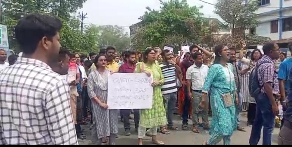 বুধবার আলিপুরদুয়ারে মিছিল করে ডিআই অফিসের উদ্দেশ্যে রওনা দেয় চাকরিহারারা এবং ডিআই অফিসে সামনে বিক্ষোভ দেখায়।