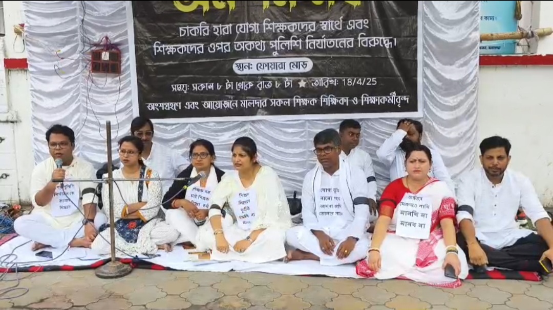 নিজস্ব সংবাদদাতা, মালদা—চাকরি হারা যোগ্য শিক্ষকরা অনশন মঞ্চে বসলো। শুক্রবার সকাল আটটা থেকে মালদা শহরের পোস্ট অফিস মোড়ে একটি অস্থায়ী মঞ্চ করে সেখানে যোগ্য শিক্ষকেরা অনশন মঞ্চে বসে আন্দোলন শুরু করেন। তারা জানায় এই আন্দোলন চলবে সকাল আটটা থেকে রাত আটটা পর্যন্ত. সেই অনশন মঞ্চে যোগ দেবে বিমুল প্রান্ত থেকে আসা চাকরি-হারা যোগ্য শিক্ষকেরা. তাদের মূল দাবিগুলো হচ্ছে যোগ্য শিক্ষকদের চাকরি ফিরিয়ে দিতে হবে, তাদের ওপরে লাঠিচার্জ এবং লাথি মারা পুলিশের তার বিরুদ্ধেও আন্দোলন ।.