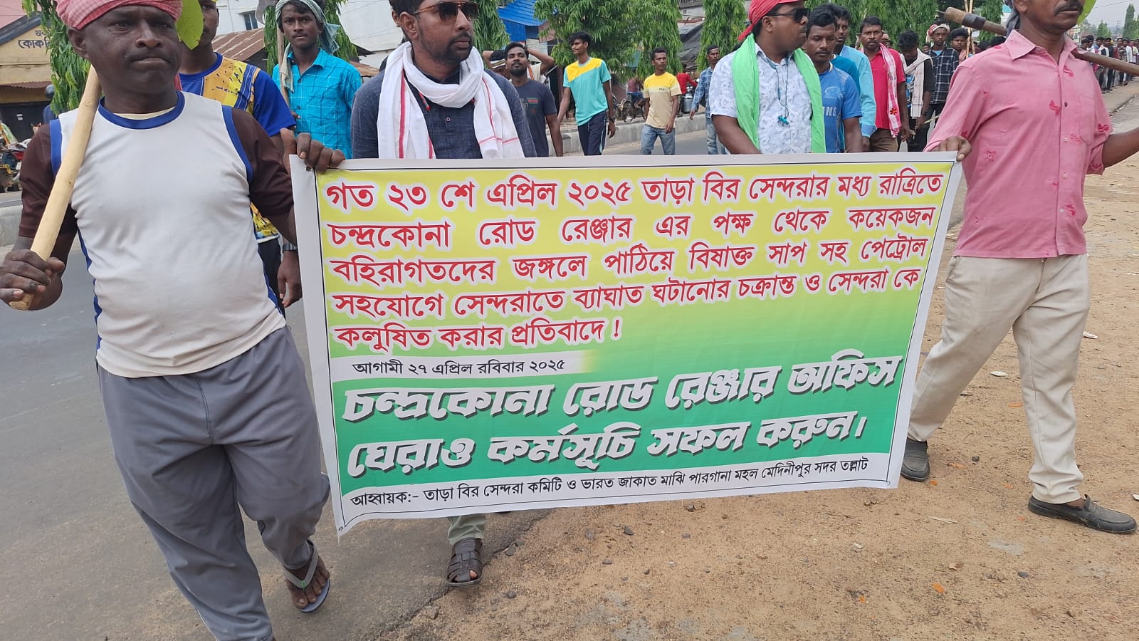 চন্দ্রকোনারোড রেঞ্জার অফিস ঘেরাও করল তারা বির সেন্দরা কমিটি ও ভারতজাকাত মাঝি পরগনা মহলের সদস্যরা।