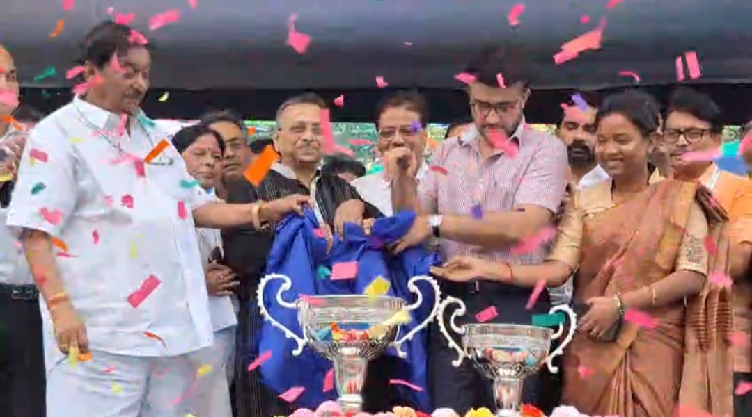 বাঁকুড়া তামলিবাঁধ ময়দানে প্রথম বর্ষ এম.পি কাপ ক্রিকেট প্রতিযোগীতার উদ্বোধনী ম্যাচের আগে ট্রফির উদ্বোধন করেন সৌরভ গাঙ্গুলী।