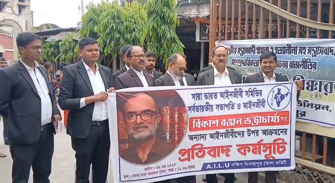 দক্ষিণ দিনাজপুরের বালুরঘাট জেলা আদালতের গেটে সারা ভারত আইনজীবী সমিতির পক্ষ থেকে প্রতিবাদ কর্মসূচি পালন করা হয়।