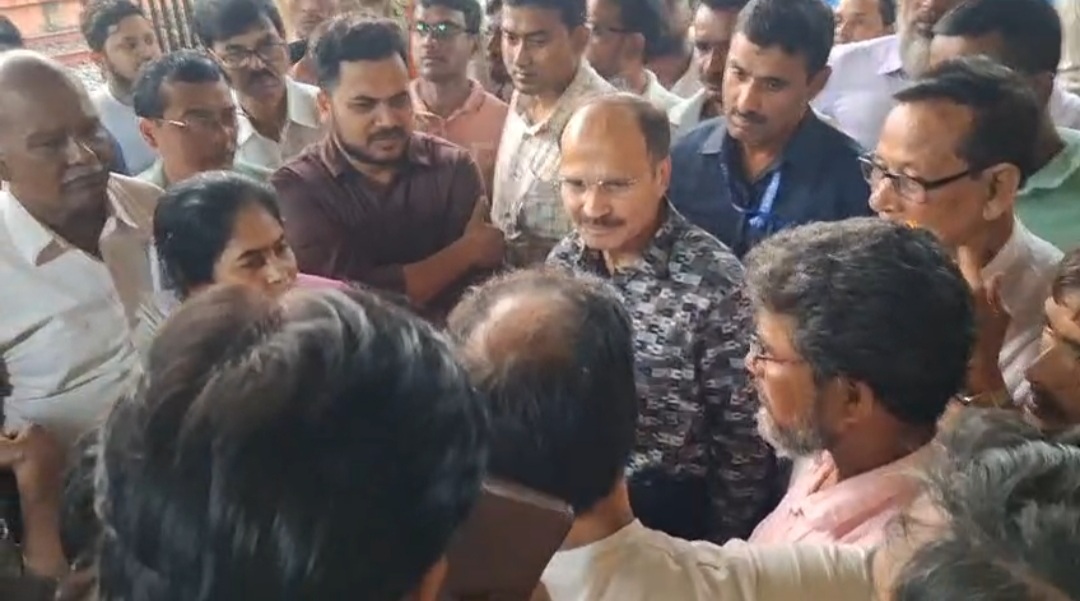 ভগবানগোলা রেল স্টেশন পরিদর্শনে আসেন অধীর চৌধুরী।