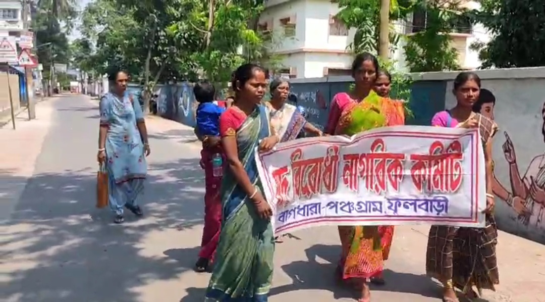 নিজস্ব সংবাদদাতা, বালুরঘাট, ১০ মেঃ- চোলাই মদের রমরমা কারবারে অশান্ত দক্ষিণ দিনাজপুরের ফুলবাড়ি, বাগধারা ও পঞ্চগ্রাম। এলাকার পুরুষদের নেশার জেরে চরম সামাজিক অবক্ষয়ের ছবি তুলে ধরে প্রতিবাদে সামিল হয়েছিলেন সেখানকার মহিলারা। অভিযোগ, মদ খেয়ে বাড়ির পুরুষেরা ঘরে ফিরে স্ত্রীর উপর শারীরিক ও মানসিক অত্যাচার চালাচ্ছে। এই পরিস্থিতির অবসানে ‘মদ বিরোধী নাগরিক কমিটি’র ব্যানারে একজোট হয়ে আন্দোলনে নামেন এলাকার বহু মহিলা।