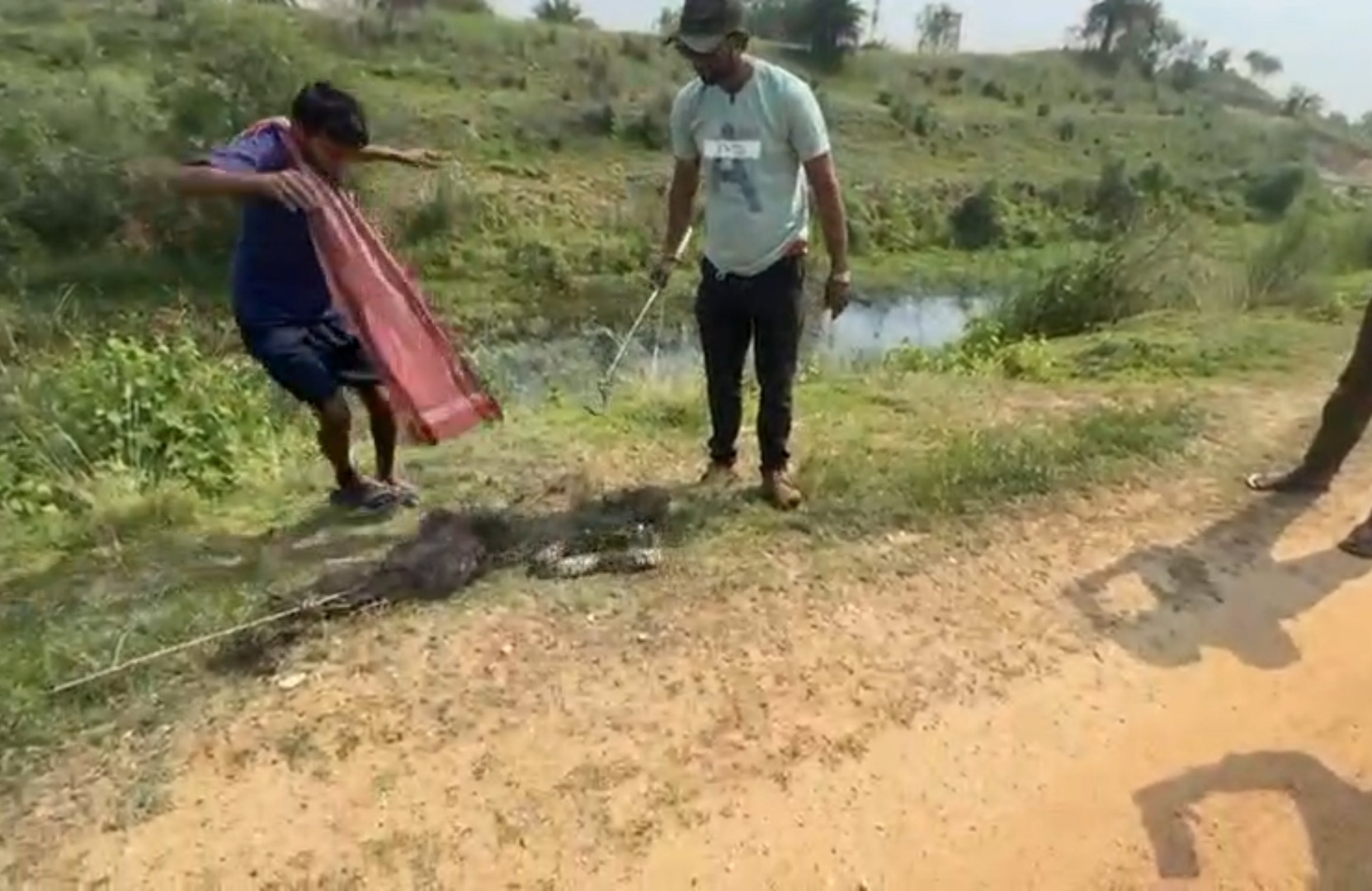 মাছ ধরার জালে এমন অজগর আটকে যাওয়ার ঘটনাটি ঘটেছে বীরভূমের খয়রাশোল ব্লকের অন্তর্গত পানসিউড়ি গ্রামে। যেখানে মাছ ধরার জন্য দেবুবাবু গ্রামের সেচ ক্যানেলে জাল পেতে ছিলেন। কিন্তু দেখা যায় ওই জালে আটকে পড়েছে একটি চার ফুটের অজগর। তিনি অজগরটিকে জলের মধ্যে আটকে থাকতে দেখতেই দুবরাজপুরের সর্বপ্রেমী অমিত শর্মাকে খবর দেন এবং অমিত শর্মা ঘটনাস্থলে এসে ওই অজগরটিকে জালমুক্ত করেন। অজগরটিকে জালমুক্ত করে উদ্ধার করার পর বন দপ্তরের সহযোগিতায় তাকে অনুকূল পরিবেশে পুনর্বাসন দেওয়া হবে বলে জানিয়েছেন অমিত শর্মা।