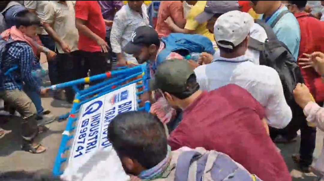 বিকাশ ভবনের মেন গেট কার্যত ভেঙে ফেলে বিকাশ ভবনে ঢুকে পড়লো আন্দোলন কারী চাকরিহারারা।