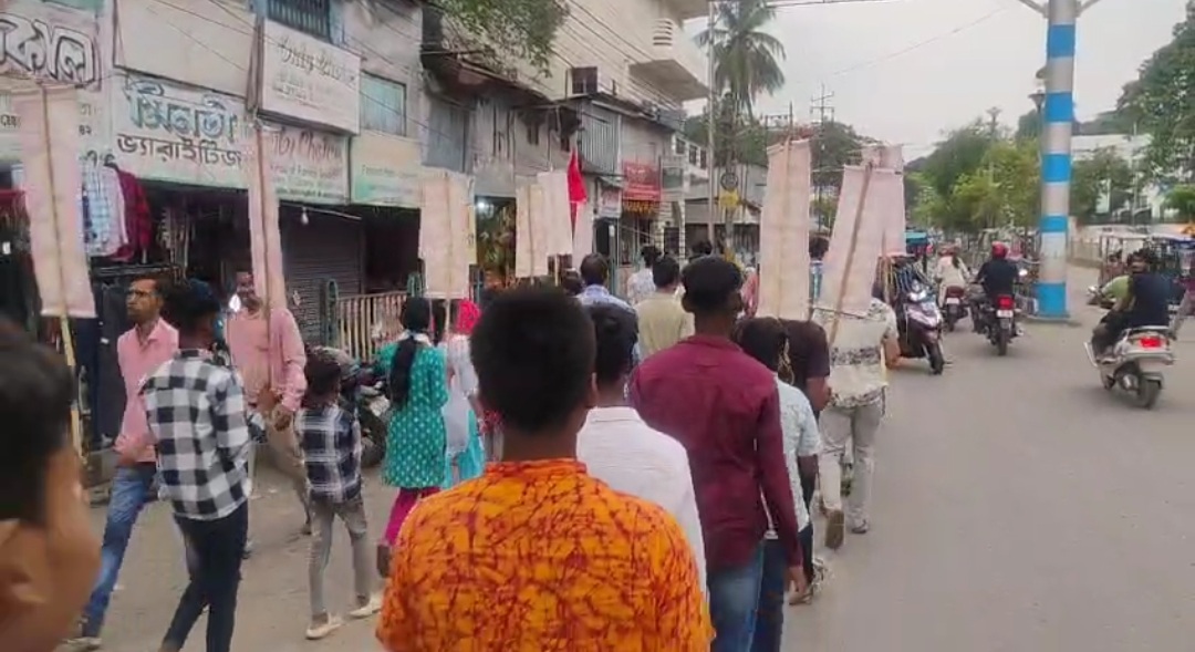 বালুরঘাট থানা মোড় চত্বর থেকে শুরু হয় এই প্রতিবাদ মিছিল, যা শহরের বিভিন্ন প্রধান সড়ক পরিক্রমা করে। মিছিল থেকে উঠেছে ‘শিক্ষার অধিকার রক্ষা করো’, ‘যোগ্য শিক্ষাকর্মীদের নিঃশর্ত নিয়োগ করো’, ‘পুলিশি বর্বরতার জবাব চাই’—এই ধরনের বিভিন্ন স্লোগান।