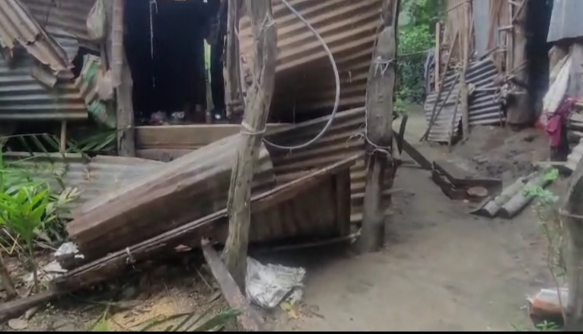 গভীর রাতে জলদাপাড়া জঙ্গল থেকে একটি দাঁতাল হাতি বেরিয়ে সন্তোষ দাসের বাড়িতে হামলা চালায়।