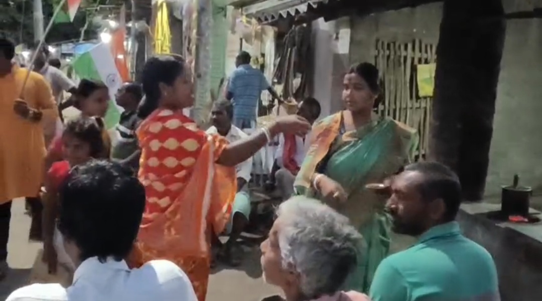 পথযাত্রায় অংশগ্রহণকারী এবং এলাকাবাসীকে সিন্দুরের তিলক পড়ানো হয়।