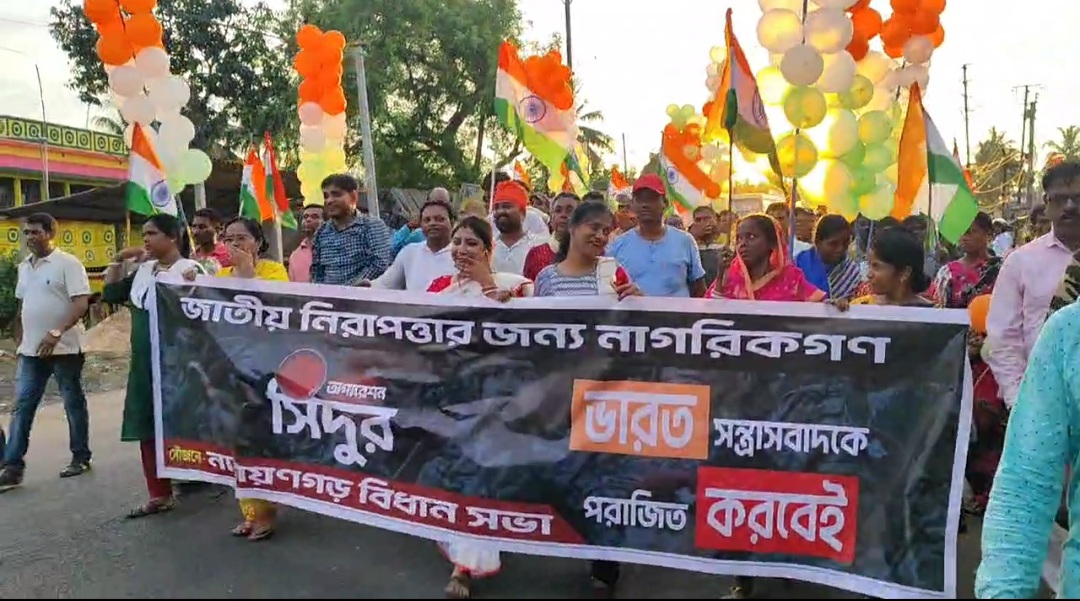 পশ্চিম মেদিনীপুর, নিজস্ব সংবাদদাতাঃ- পাকিস্তানের বিরুদ্ধে অপারেশন সিঁদুরের পর সারা রাজ্যের পাশাপাশি পশ্চিম মেদিনীপুর জেলার বেলদাতে দলীয় পতাকা ছেড়ে জাতীয় পতাকা হাতে নিয়ে “তিরঙ্গা যাত্রার” আয়োজন করা হয়েছে বিজেপির তরফে, এই দিন এই “তিরঙ্গা যাত্রায়”উপস্থিত ছিলেন দাপুটে বিজেপি নেতা দিলীপ ঘোষ,এছাড়াও এই “তিরঙ্গা যাত্রায়” কয়েক হাজার বিজেপি কর্মী সমর্থক দলীয় পতাকা ছেড়ে জাতীয় পতাকা হাতে নিয়ে মিছিলে পামেলায়। এই দিন গোটা এলাকার এই মিছিল পরিক্রমা করার পর সংবাদ মাধ্যমের মুখোমুখি হয়ে ভারত বর্ষ গোটা বিশ্বে চতুর্থ স্থান অধিকার করেছে, সেই পরিপ্রেক্ষিতে দিলীপ ঘোষ বলেন সবাই সংঘবদ্ধ হয়ে লড়াই করছে বলে আজ বিশ্বের কাছে চতুর্থ স্থানে ভারত বর্ষ নাম লিখিয়েছে, পাশাপাশি নীতিবায়ক সভায় যোগ দেয়নি মুখ্যমন্ত্রী মমতা বন্দ্যোপাধ্যায় সেই বিষয় নিয়ে দিলীপ ঘোষ কটাক্ষ ছুঁড়ে দিলেন, তিনি বলেন তৃণমূলের যেখানে নীতি নেই এটা স্বাভাবিক।পাশাপাশি তিনি জানিয়েছেন আগামী দিনের ভারত বর্ষ এক নম্বর স্থান দখল করবে।