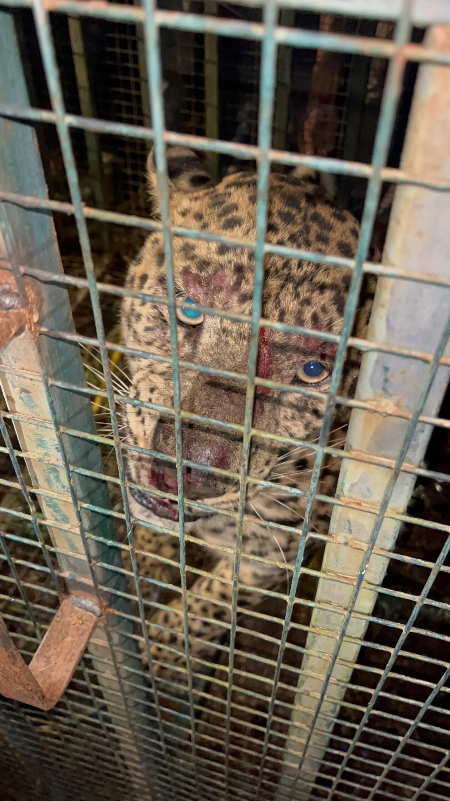 আলিপুরদুয়ার জেলার বীরপাড়ার সিংহানিয়া চা বাগানে খাঁচাবন্দী হল একটি পূর্ণবয়ষ্ক লেপার্ড।