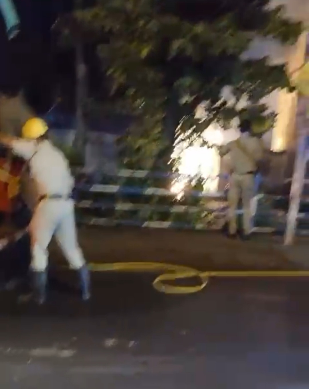 দক্ষিণ ২৪ পরগনা, নিজস্ব সংবাদদাতা:- ডায়মন্ড হারবার: ডায়মন্ড হারবার থানাতে বাজি বিস্ফোরণ। কালো ধোঁয়ায় ছেয়ে গিয়েছে গোটা এলাকা। আতঙ্কিত এলাকাবাসীরা ঘটনাস্থলে দমকলের একাধিক ইঞ্জিন।স্থানীয় সূত্রে জানা যায় আজ অর্থাৎ বুধবার সন্ধ্যায় হঠাৎই বিস্ফোরণের কেঁপে ওঠে দক্ষিণ ২৪ পরগনার ডায়মন্ড হারবার ১০ নম্বর ওয়ার্ডে মাধবপুর এলাকায় ১১৭ নম্বর জাতীয় সড়কের পাশে ডায়মন্ড হারবার থানা। বিস্ফোরণের ধীরে গোটা এলাকায় কালো ধোঁয়ায় ছেয়ে গিয়েছে। এখনো পর্যন্ত হতাহত কোন খবর পাওয়া যায়নি। আগুন নিয়ন্ত্রণে আনার জন্য ডায়মন্ড হারবার দমকল বিভাগ থেকে দমকলের একাধিক ইঞ্জিন ঘটনাস্থলে পৌঁছেছে। গোটা এলাকা নিরাপত্তা জনিত কারণে মুড়ে ফেলেছে ডায়মন্ড হারবার থানার পুলিশ। পুলিশ সূত্রে জানা যায় ডায়মন্ড হারবার থানার পক্ষ থেকে ডায়মন্ড হারবার থানা এলাকায় বিভিন্ন জায়গা থেকে নিষিদ্ধ শব্দবাজি থানা চত্বরে যে এলাকায় মজুদ করা হয়েছিল সেই জায়গায় হঠাৎই আগুন লেগে বিস্ফোরণ ঘটে। কিভাবে আগুন লাগল তা খতিয়ে দেখছে ডায়মন্ড হারবার থানার পুলিশ। গোটা বিষয় আতংক ছড়িয়েছে গোটা এলাকায়। নিরাপত্তা জনিত কারণে ডায়মন্ডহারবার শহরের বিদ্যুৎ পরিষেবা বিচ্ছিন্ন করে রাখা হয়েছে।