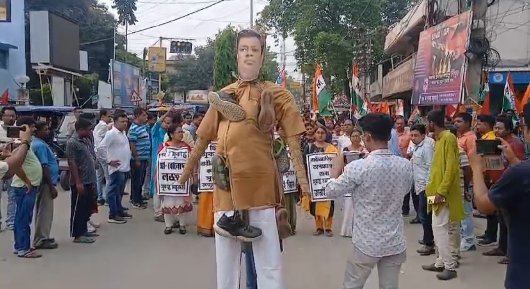 দঃ দিনাজপুর, নিজস্ব সংবাদদাতাঃ- সুকান্ত মজুমদারের কুরুচিকর মন্তব্যে শহর তৃণমূল কংগ্রেসের পক্ষ থেকে সুকান্ত মজুমদারের কুশপুত্তলিকা তৈরি করে তাতে জুতোর মালা পরিয়া ধিক্কার মিছিল করলো মিছিল করলো শহর তৃণমূল কংগ্রেস। শর্ট তৃণমূল কংগ্রেস সভাপতি প্রীতম রাম মন্ডল বলেন, মুখ্যমন্ত্রী মাননীয়া সি মমতা ব্যানার্জির নামে সুকান্ত বাবু কুরুচি কর মন্তব্য জেরে তারা বিজেপি তথা সাংসদ সুকান্ত মজুমদার মাননীয়া মুখ্যমন্ত্রীর নামে যে কুরুচিকর মন্তব্য করেছেন তারই প্রতিবাদে আজ তৃণমূলের পক্ষ থেকে এই ধিক্কার মেশিন। তিনি একজন সাংসদ তথা শিক্ষক হয়ে কিভাবে মাননীয়া মুখ্যমন্ত্রীর নামে এইরকম কুরুচি কর মন্তব্যকরেন তার বিরুদ্ধে এদিন দক্ষিণ দিনাজপুর জেলার বালুরঘাট শহরে একটি বিক্ষোভ মিছিল করা হয়।