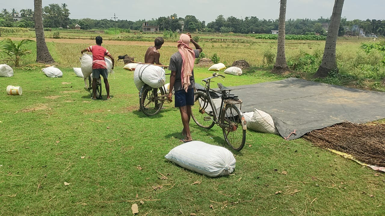 নিজস্ব সংবাদদাতা, পূর্ব বর্ধমান:- পূর্ব বর্ধমান জেলা রায়না দুই ব্লকে গোতান অঞ্চলে বাদাম গাছ তুলে মেশিনের সাহায্যে ঝাড়া হচ্ছে, বিঘা পিছু ছয় থেকে সাত কুইন্টাল কাঁচা বাদাম হচ্ছে এতে চাষী ভাইদের মুখে হাসি ফুটেছে, আজকে কাঁচা বাদামের দাম চার হাজার থেকে ৪২০০টাকা , জানালেন চাষী ভাইরা ।