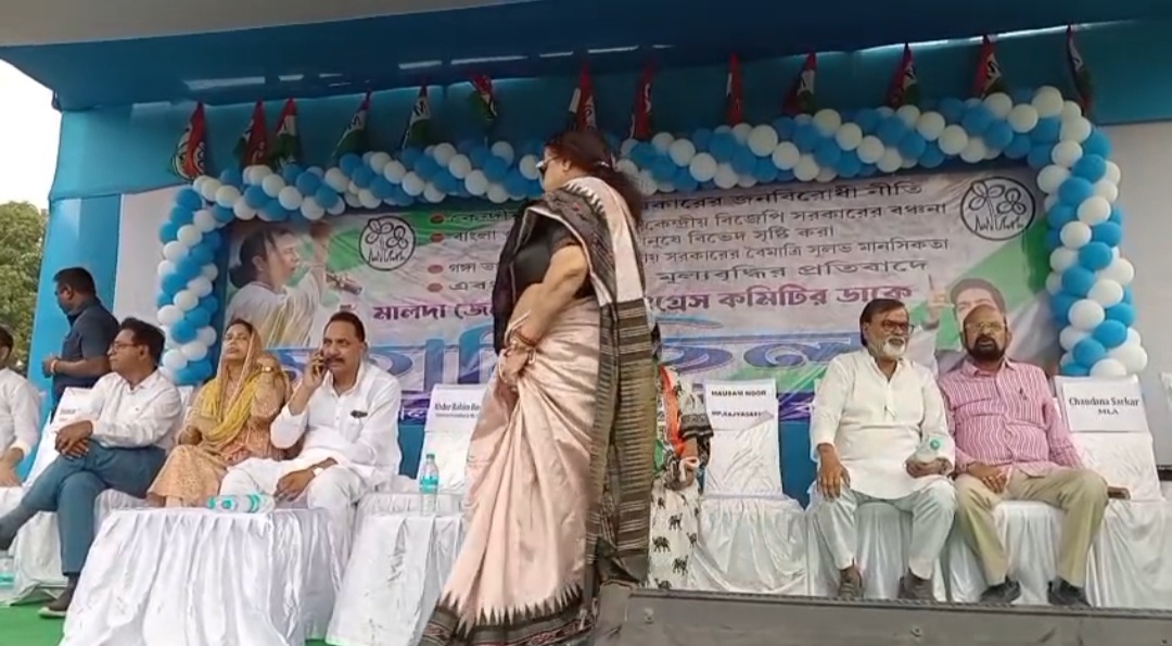 মালদা কলেজ ময়দানে আয়োজিত সভায় কেন্দ্রের জনবিরোধী নীতির বিরোধিতায় বক্তব্য রাখেন তৃণমূলের রাজ্য সহ সভাপতি জয়প্রকাশ মজুমদার।