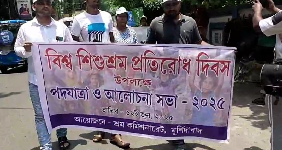 ১২ই জুন, বিশ্ব শিশুশ্রম প্রতিরোধ দিবস উপলক্ষে পদযাত্রা ও আলোচনা সভা -২০২৫, আয়োজনে শ্রম কমিশনারেট বহরমপুর মুর্শিদাবাদ।