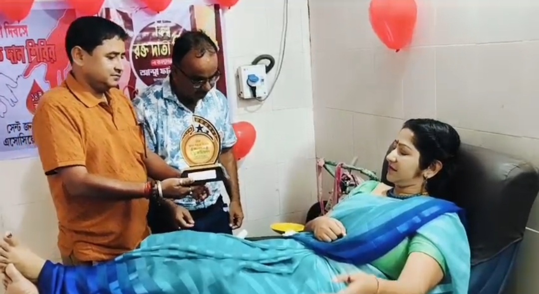 কোচবিহার, নিজস্ব সংবাদদাতা:- ১৪ই জুন২০২৫ বিশ্ব রক্ত দাতা দিবস পালন করা হয় বডি পেইন্টিং এবং রক্ত দানের মাধ্যমে সেখানে আজ বডি পেইন্টিং করেন বিশিষ্ট চিত্রশিল্পী ইভানা কুন্ডু তার সাথেই বিভিন্ন রক্তদাতারা আস্থা ফাউন্ডেশনের উদ্যোগে কোচবিহার সেন্ট জোন্স ব্লাড সেন্টারে রক্তদান করেন সকল রক্তদাতা দের আস্থা ফাউন্ডেশনের তরফ থেকে রক্ত যোদ্ধা হিসেবে সম্মানিত করা হয় সকল রক্ত যোদ্ধাদেরউত্তরীয় পরিয়ে হাতে মেমোন্টো, ভগবত গীতা এবং সবুজ চারা গাছ দিয়ে সম্মানিত করা হয় এই রক্ত দান মহোৎসবে উপস্থিত ছিলেন কোচবিহার জেলার বিশিষ্ট সমাজ সেবক এবং সেবীকারা যারা নিজেরা রক্ত দিয়ে এই মহান উৎসবকে সাফল্য মন্ডিত করেছেন