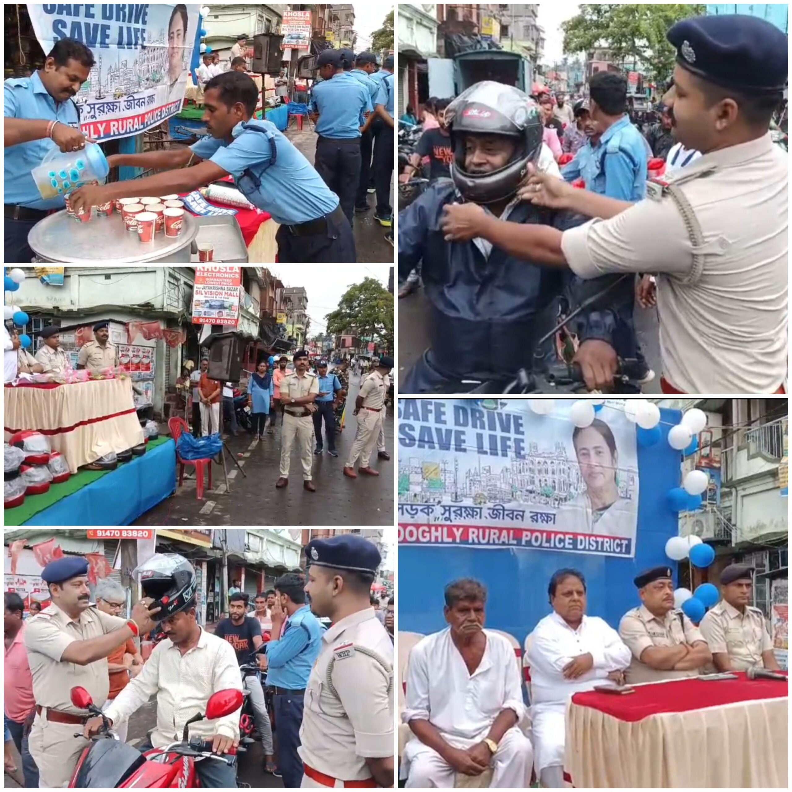 হুগলী, নিজস্ব সংবাদদাতা:- ধনিয়াখালি থানার উদ্যোগে সেভ ড্রাইভ সেভ লাইফ কর্মসূচি হয়ে গেল। প্রথমে বামেশ্বরী মায়ের মন্দিরের মোড় থেকে ভান্ডারহাটি ঘড়ির মোড় পর্যন্ত শোভাযাত্রা হয়। এই অনুষ্ঠানে উপস্থিত ছিলেন তারকেশ্বর বিধানসভার বিধায়ক রামেন্দু সিংহরায়, ডিএসপি ডিএনটি প্রিয়ব্রত বক্সী, সিআই ধনিয়াখালি রামগোপাল পাল, অফিসার ইনচার্জ গৌরাঙ্গ দে , ভাণ্ডারহাটি ১নম্বর গ্রাম পঞ্চায়েতের প্রধান রতনচন্দ্র মল্লিক, সহ অন্যান্যরা। পথ চলতি হেলমেট বিহীন মোটরবাইক চালকদের সতর্ক করা হয় এবং তাদের বোঝানো হয় রাস্তায় বেরোনোর সময় হেলমেট পড়ে বেরোয়। এর পাশাপাশি চারচাকা গাড়িতে স্টিকার লাগিয়ে দেওয়া হয় সেভ ড্রাইভ সেভ লাইভের । যে সমস্ত বাইক আরোহী হেলমেট পড়ে মোটরবাইক চালাচ্ছে তাদের গোলাপ ফুল দিয়ে সম্মান জানান ধনিয়াখালি থানার ভারপ্রাপ্ত অফিসার ইনচার্জ গৌরাঙ্গ দে সহ অন্যান্য পুলিশ অফিসাররা। এই দিন পথ চলতি সাধারণ মানুষকে ঠান্ডা পানীয় জলের শরবত ও হেলমেট বিহীন বাইক চালক ৩৫ জনকে হেলমেট বিতরণ করা হয় এই অনুষ্ঠান থেকে।