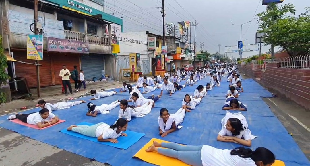 এদিন আন্তর্জাতিক যোগ দিবস উপলক্ষে শহরবাসীকে যোগ ব্যায়াম করার মাধ্যমে সুস্থ থাকার বার্তা দেন উদ্যোক্তারা।