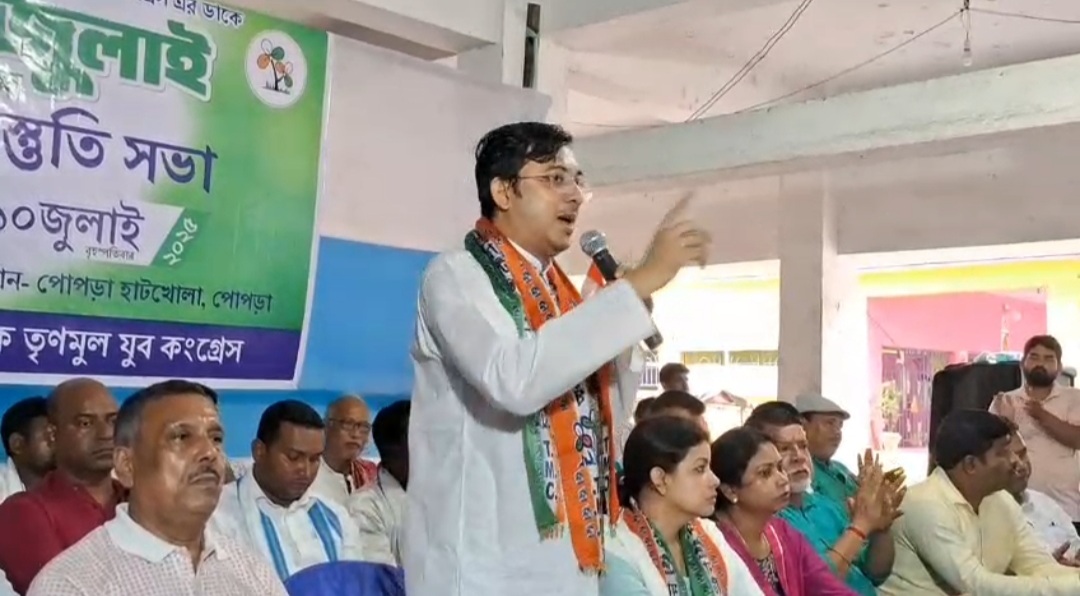 বিজেপির ঘাঁটি ভেদ করতে মঞ্চ থেকে বিধায়ক কে একাধিক ইস্যুতে তীব্র আক্রমণ নবনির্বাচিত জেলা যুব তৃণমূল সভাপতির।