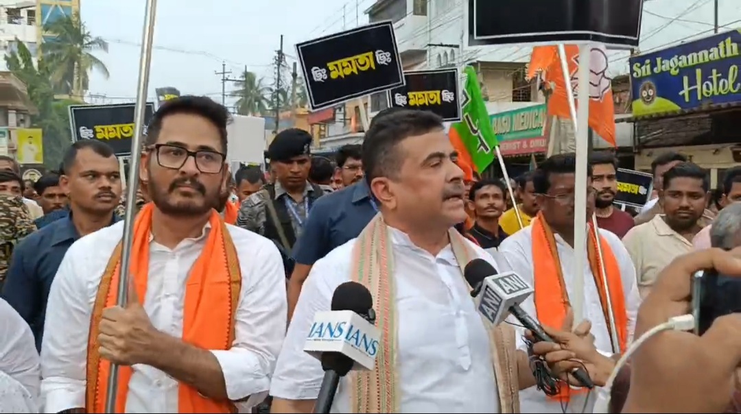 পশ্চিম মেদিনীপুর, নিজস্ব সংবাদদাতা:- অভয়াকণ্ড নিয়ে ইতিমধ্যেই সরগরম গরম রাজ্য রাজনীতি, এই পরিস্থিতির মাঝে রাজ্যজুড়ে নারী নির্যাতনের বিরুদ্ধে কন্যা সুরক্ষা যাত্রা করছে বিজেপি, মঙ্গলবার পশ্চিম মেদিনীপুর জেলার খড়গপুর শহরে নারী সুরক্ষা যাত্রা কর্মসূচি গ্রহণ করল বিজেপির নেতা কর্মীরা, এই দিন এই মিছিলে কয়েক হাজার বিজেপি কর্মী সমর্থক পা মিলিয়েছিলেন, যেখানে উপস্থিত ছিলেন রাজ্যের বিরোধী দলনেতা শুভেন্দু অধিকারী, এই দিন শহরের মালঞ্চ রোড থেকে প্রায় দু কিলোমিটার এই পদযাত্রা হয়, এইদিন সংবাদমাধ্যমের মুখোমুখি হয়ে তৃণমূল সরকারকে নিশানা করলেন রাজ্যের বিরোধী দলনেতা শুভেন্দু অধিকারী।