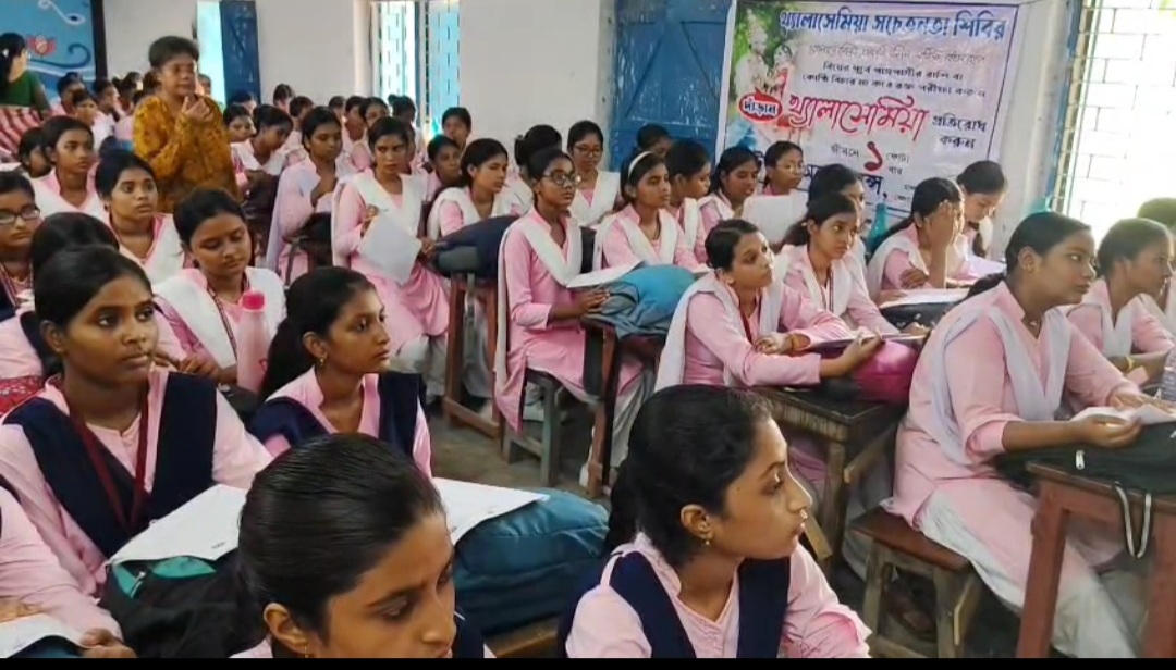 মালদা রামকিংকর বালিকা বিদ্যাশ্রমে বিনামূল্যে থ্যালাসেমিয়া বাহক নির্ণায়ক শিবির।